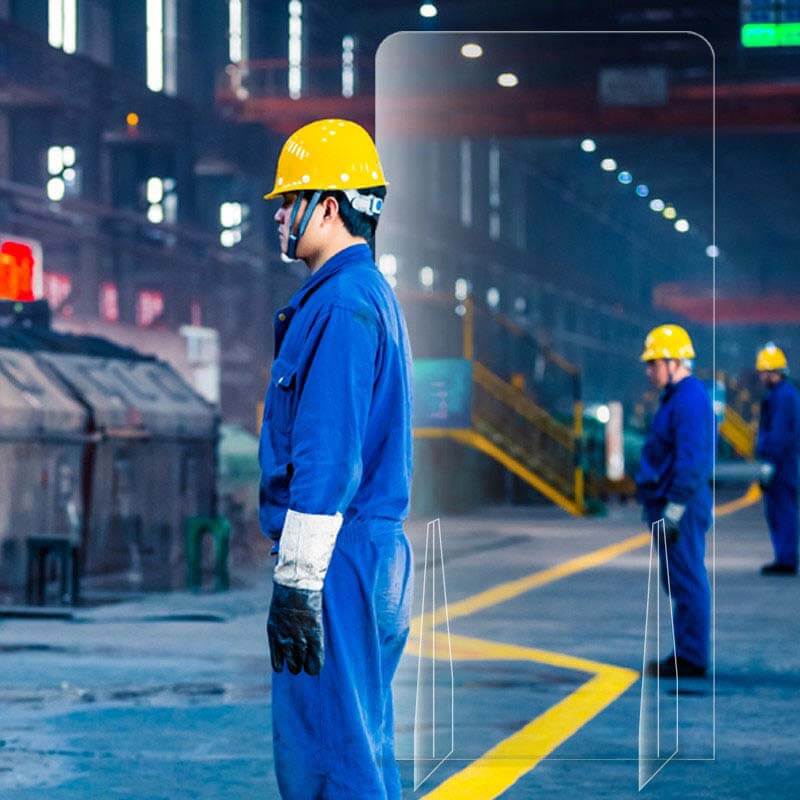 Barrera física entre empleados y trabajadores para reducir la probabilidad de contagio.