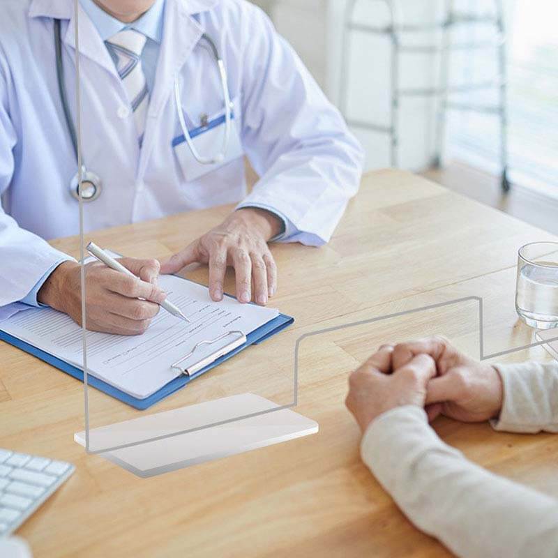 Este tipo de Mampara están fabricadas con metacrilato de primera calidad el cual ofrece una transparencia superior al 93%, debido a esto permite ver nítidamente y sin reflejos en la mayor parte de los casos. Las mismas ofrecen una barrera física entre en todo tipo de negocios entre los trabajadores y los clientes con el objetivo, para así reducir la posibilidad de contagio del virus y brindar protección absoluta.